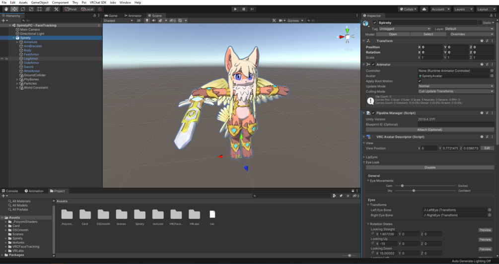 - Shading with Poiyomi version 8.0.426 (note that you're not obliged to use it, but it will also break some animations if you don't, not guaranteed to work on lower versions).