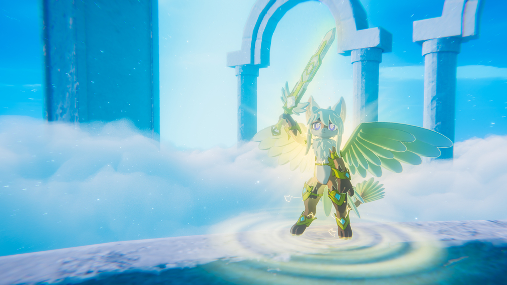 Long forgotten, the half-deities, known as Spirety finally descended from the sky, up above, where they use to keep watch of the world. Equipped with their holy sword and their light powers, their goal is to protect and bring balance to this world.